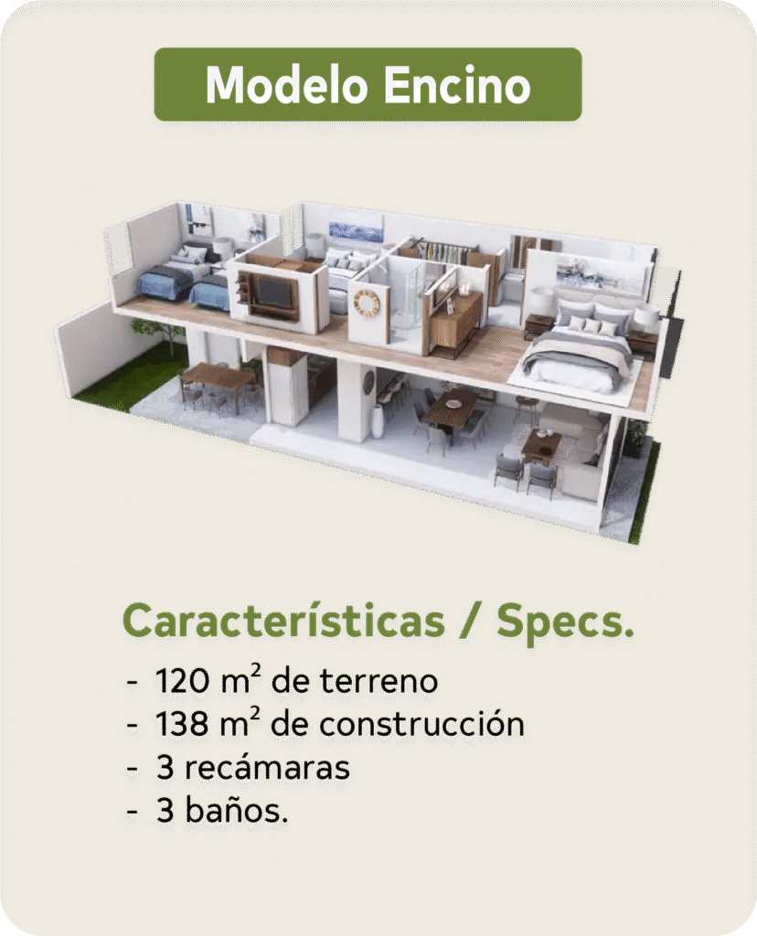 Cada casa está diseñada para ofrecer espacios amplios, ventilación natural y un entorno familiar seguro y sustentable.